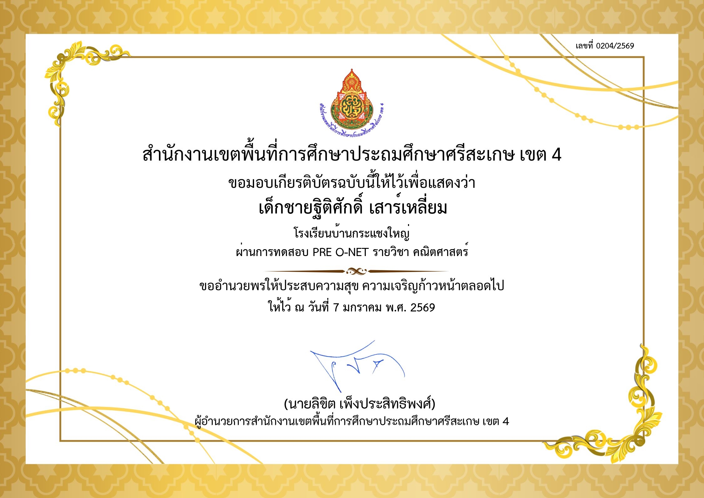 | 52 | เด็กชายฐิติศักดิ์ เสาร์เหลี่ยม |