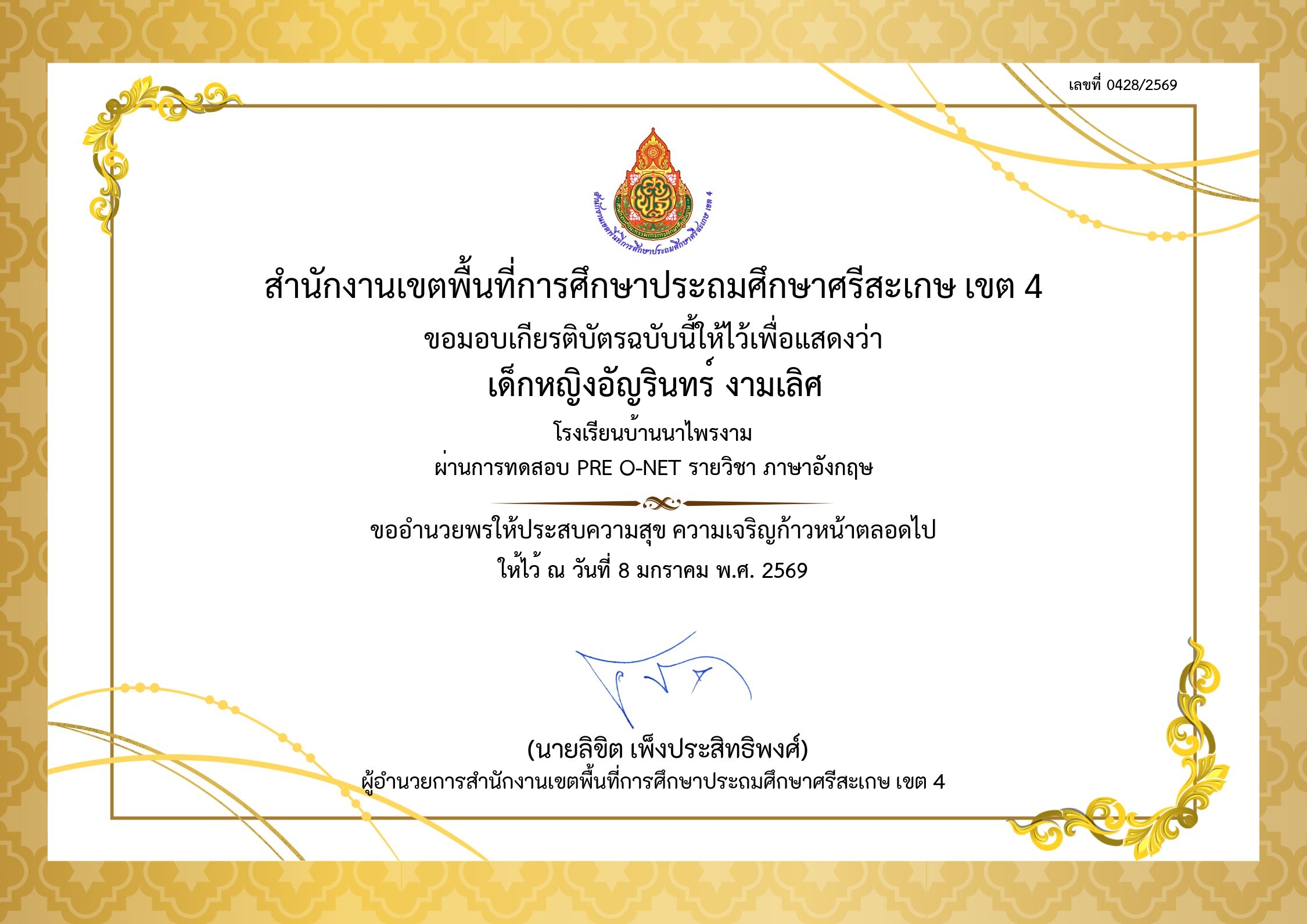 | 599 | เด็กหญิงอัญรินทร์ งามเลิศ |